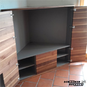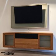 Eckschrank zur Aufnahme von TV und Zubehör.