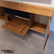 Schubkästen mit eingefrästen Griffmulden runden das Gesamtbild ab.