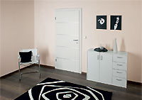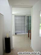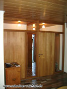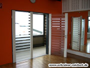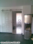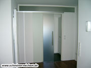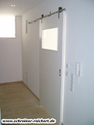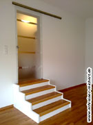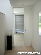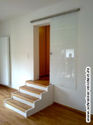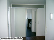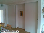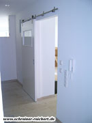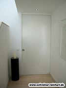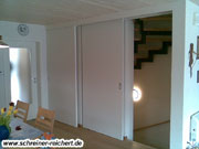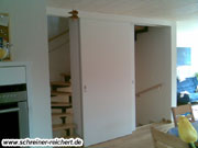 Schiebetüren in weiß Lack als Abtrennung zum Treppenhaus.