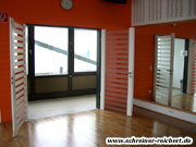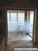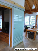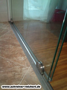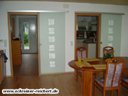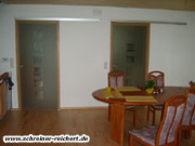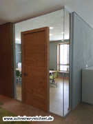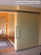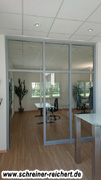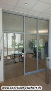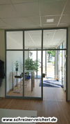 Glaselement als Raumteiler mit feststehendem Seitenteil und