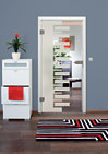 Sandstrahlmotiv durchgehend über beide Türblätter.