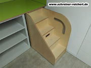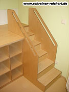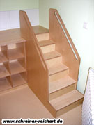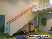 Galerietreppe als Verbindung von Gruppenraum und zweiter Ebene.