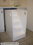 Mit Handwaschbecken, Treppe und Abfallsammler.
