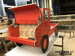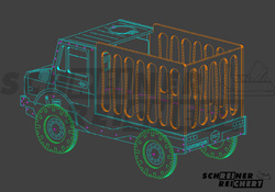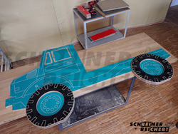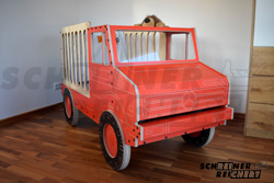 Als Vorlage für den Entwurf des Kinderbettes diente lediglich eine Blaupause des UNIMOG U5000.