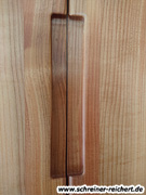 Angefräste Griffprofile, verklebte Glasfüllungen und flächig eingefräste Gratleisten sind neben ihrer eigentlichen Funktion auch Eyecatcher und Qualitätsmerkmal dieses Massivholzmöbels.