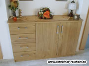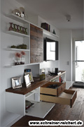 Schubkästen mit eingefrästen Griffmulden runden das Gesamtbild ab.