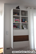 Hängendes Wandregal mit Schubkästen in Weisslack.