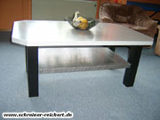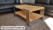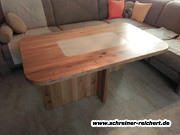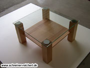 Kernbuche mit Massiven Tischbeinen und Glasplatte auf Edelstahlscheiben.