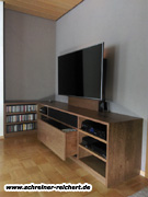Eckschrank zur Aufnahme von TV und Zubehör.